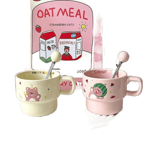 高颜值可爱叠叠陶瓷马克杯情侣水杯咖啡杯ins耐高温杯子卡通杯子