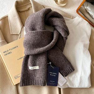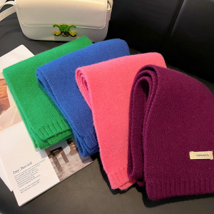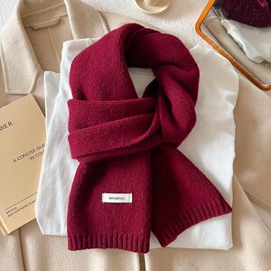 新年红色澳洲100%绵羊毛围巾小巧纯色针织围巾女加厚保暖护颈围脖