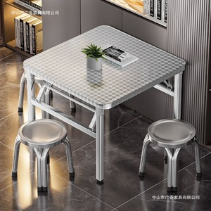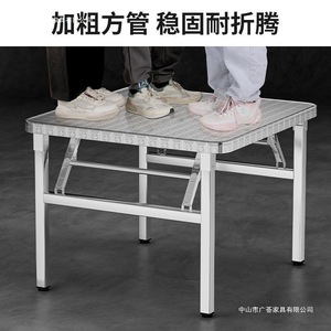 屋外レンタルハウス食堂テーブルポータブル極厚ステンレス鋼折りたたみテーブル正方形学習ライティングテーブル