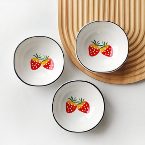 4英寸陶瓷调料碗蘸料碗可爱草莓碗火锅蘸料碗批发醋碟油碟小碗