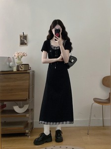 プラスサイズの女性の夏の新しいスタイルの太ったMM気質痩身ステッチ偽ツーピーススタイルドレス