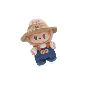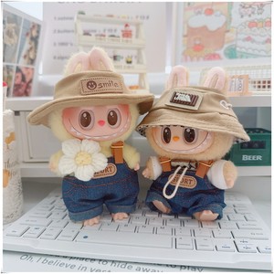 17cmラブブ ラブブビニールベビー服 10cmコットンドール 3歳 Tシャツ 花サスペンダーパンツ オープンキャップ