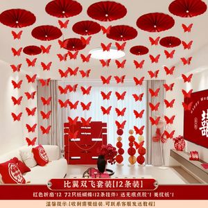婚房布置喜字拉花客厅结婚装饰蝴蝶吊顶挂饰女方卧室婚庆用品全套