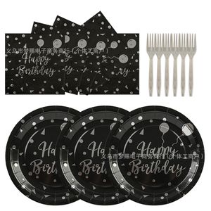 クロスボーダー黒バルーン使い捨て厚紙皿子供の誕生日や結婚式パーティー使い捨て食器セット