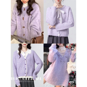 Puyuan 秋と冬のニットカーディガンレディーストップスセーター女性のかわいいキャンディーカラーのソフトワックス状 13 行女性の卸売