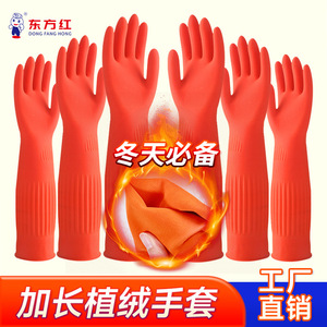 オールインワン植毛手袋、拡張ゴムラテックスプラスベルベット手袋、キッチン家事、冬の食器洗い、防水洗濯
