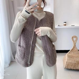 秋季新款颗粒绒毛绒绒马夹外穿背心女米白色卡其色咖啡色其它