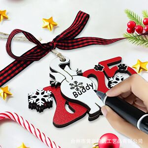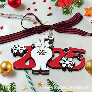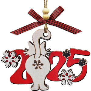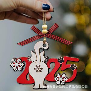 圣诞节装饰品木质小挂件猫咪圣诞树装饰挂饰场景布置复古道具挂件