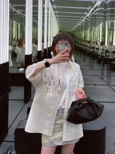 天井品質 25SS トレンドブランド 新品 M デジタルプリント コントラストカラーシャツ 男女同型 半袖シャツ トレンド