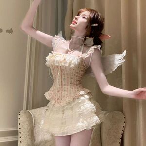 新款甜美田园纯欲修身气质森系碎花上衣公主短裙套装女拼接丝光