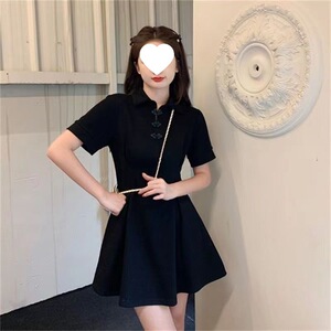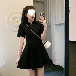 新しい中国風のボタン改良されたチャイナドレス女性の夏プラスサイズファットmmウエスト痩身半袖ポロカラーリトルブラックドレス
