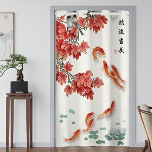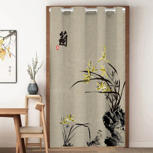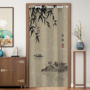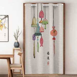 中国風ドアカーテン、パーティションカーテン、パンチングなし、寝室、家庭用カーテン、バスルーム、キッチンカーテン、完全遮蔽