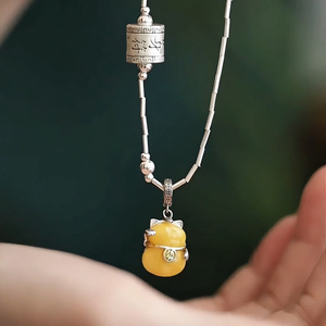 925 シルバーレトロ新中国風蜜蝋招き猫祝福ユニバーサルバックルペンダントペンダント女性のネックレスニッチハイエンド