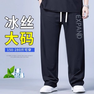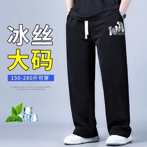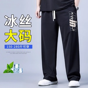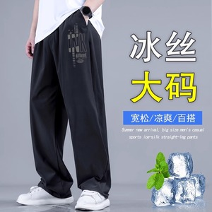 プラスサイズメンズスポーツカジュアルワイドレッグパンツ2025年夏新作速乾性ファットマンアイスシルク薄いストレートパンツ