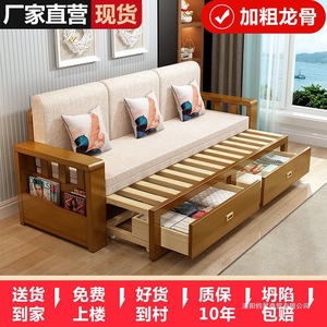 实木沙发床一体两用隐形床客厅小户型抽屉式折叠沙发床可伸缩储物