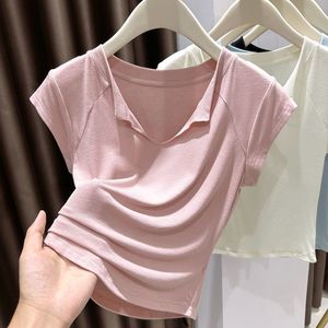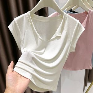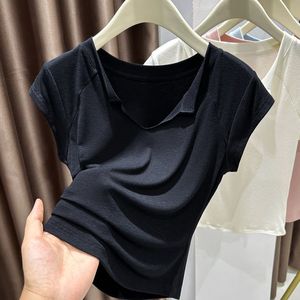 大码莫代尔V领短袖t恤女裝胖mm薄款插肩飞飞袖显瘦内搭面膜t上衣