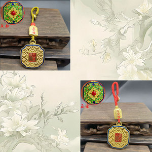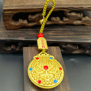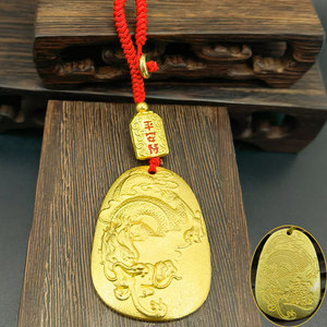16#「福」の文字と龍の模様のコンパス+平和のお守りの黄色いロープ