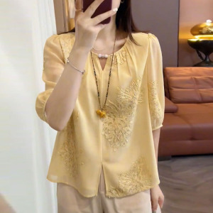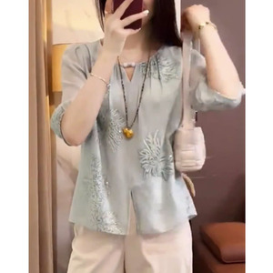 気質新しい中国風半袖シャツ婦人服 2025 新しい夏のシャツ超人気のライト高級ハイエンドトップ