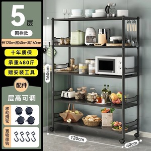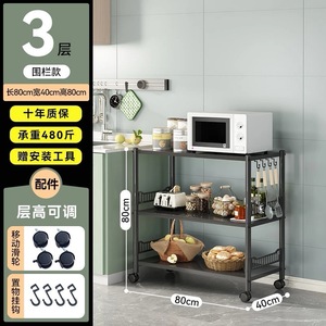 厨房置物架带围栏款出租屋阳台落地架子 微波炉收纳置物架可移动
