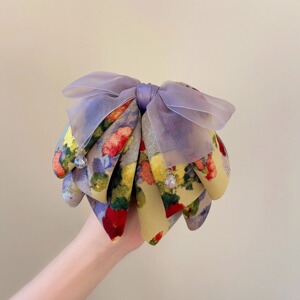 新款彩色油画蝴蝶结发夹高级感马尾夹蕾丝珍珠抓夹后脑勺鲨鱼夹子