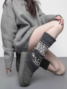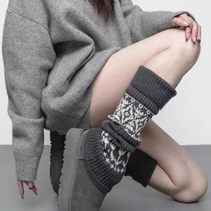 针织长筒袜美式复古袜套秋冬美拉德撞色个性保暖搭鞋靴腿套堆堆袜