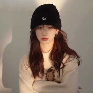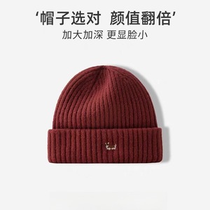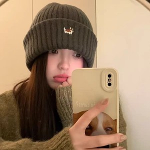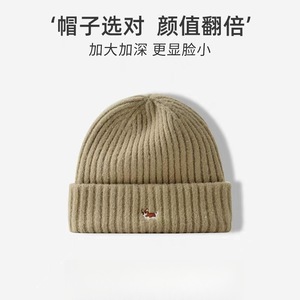 頭囲の大きい女性向けの新しい秋冬の刺繍入り防寒帽子、暖かく耳を保護する韓国版の無地の芸術的でシンプルな男性用ニットウール帽子