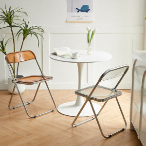 ホワイト70cm丸テーブル、インターネットセレブ透明チェア2脚、ペイント
