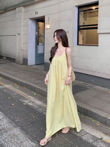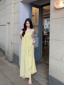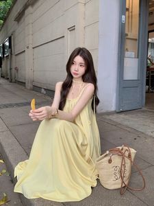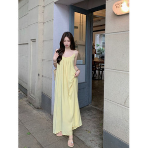 海边度假风黄色吊带连衣裙女夏季宽松休闲沙滩裙仙女