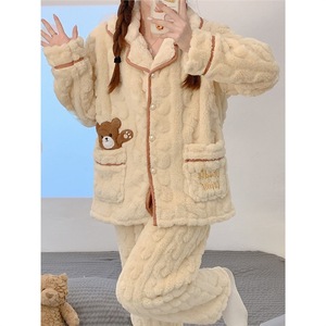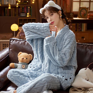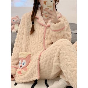 睡衣女冬季加厚保暖珊瑚绒套装2025年新款卡通秋冬款法兰绒家居服