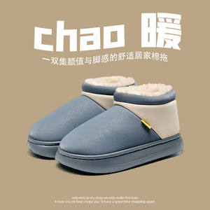 高帮棉鞋男款冬季2025新款防水防滑加绒加厚底外穿保暖棉拖鞋女士