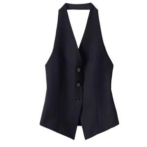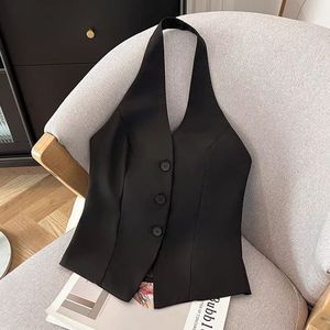 スーツベスト気質新スタイル2025デザインスリムベスト黒バックレスベストショートノースリーブトップ春と秋