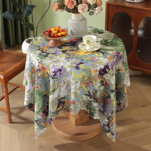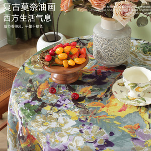 クロスボーダーアメリカ油絵ラウンドテーブルクロス防水、耐油、汚れにくい小さなラウンドテーブルハイエンドカバー布装飾レトロ工場