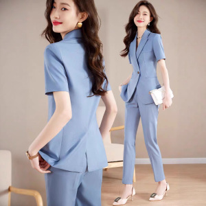 女性用半袖スーツ、夏用薄手通勤プロフェッショナルウェア、気質美容室作業服、おしゃれカジュアルスーツ