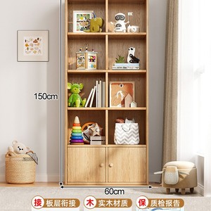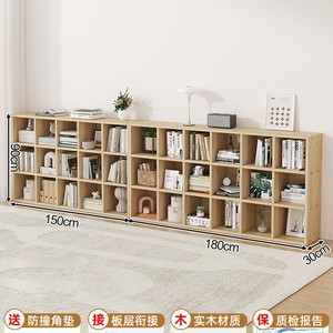 無垢材の本棚収納ラック床置き壁掛け組み合わせ格子キャビネットリビングルーム幼稚園収納収納低家庭用本棚