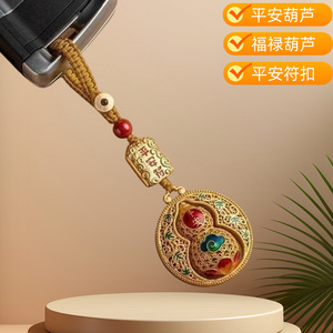 [ドロップシッピング] クリエイティブ平安ひょうたんサンドゴールドキーホルダー車のペンダントフーリューギフトキーホルダー