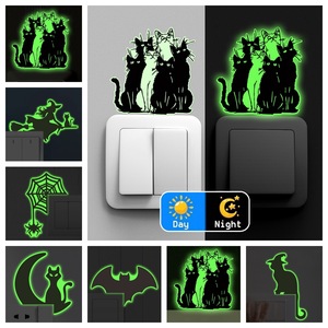ハロウィン新グリーン発光ゴースト黒猫コウモリ漫画動物スイッチソケット装飾発光スイッチステッカー