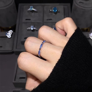 小红书爆款极简风深邃蓝小排钻细款戒指精致高级感食指戒闪钻指环