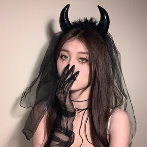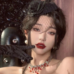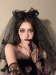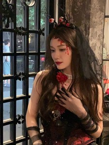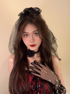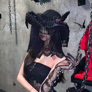 HEY TAO ダークハロウィンドレスアップゴースト花嫁帽子女性のコスメパーティーローズベールヘアアクセサリー