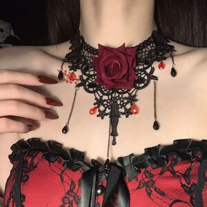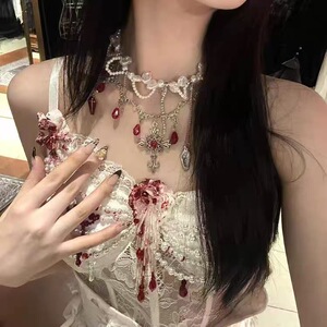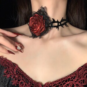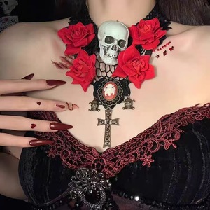 レッドローズゴーストブライダルセット【ベール+ネックレス+手袋】メイン画像~