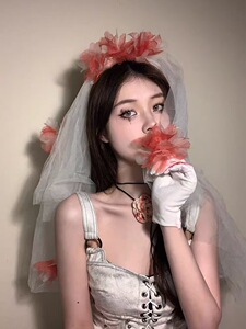 赤いバラの幽霊の花嫁のベールメイン画像~