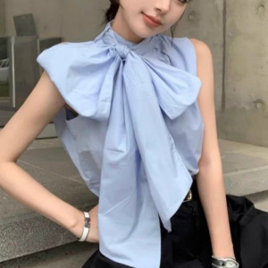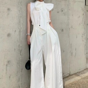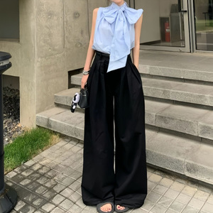 女性用の蝶結びノースリーブベストシャツ、デザインと気質のスーツトップ、ワイドレッグパンツの完全なセット