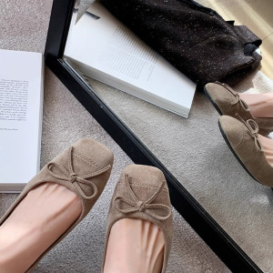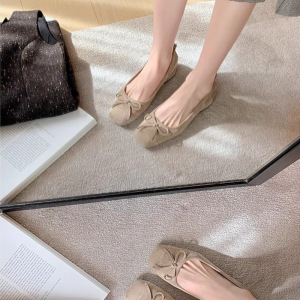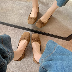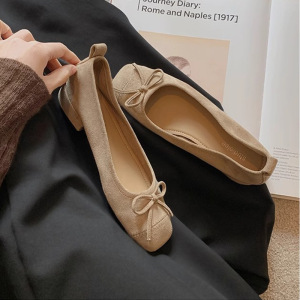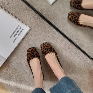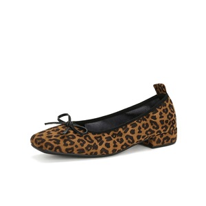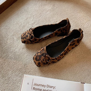 Grape Mom の新しいスクエアトゥの浅い口のリボン太いヒール気質ヒョウ柄多用途ヒョウ柄スーパーソフトシューズ女性用秋