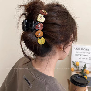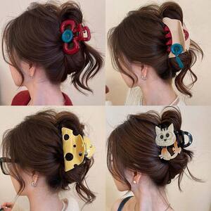 フレンチシンプルなコントラストカラーの女性用大型ボタンクリップ、ハイエンドシャーククリップ2025新しい後頭部ヘアアクセサリー