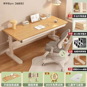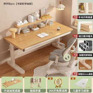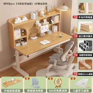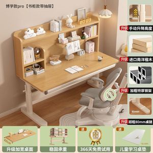 儿童学习桌可升降书桌E0级套装大桌面平衡桌脚书桌桌上书架