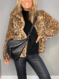 2025秋冬亚马逊外贸跨境独立站时尚豹纹翻领仿皮草毛呢女士外套