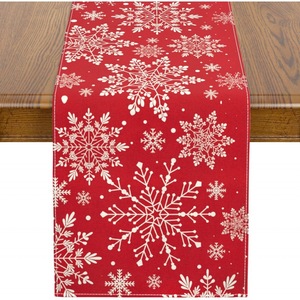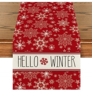 新款创新圣诞节雪花装饰桌旗亚麻耐用结实餐桌布防污跨境桌布