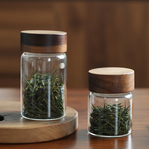ミニアカシア木製保存瓶圧力ねじり瓶日常使用高ホウケイ酸透明蓋付き茶密封ガラス瓶