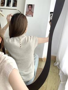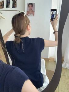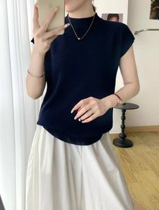 レトロファッションラウンドネックニットトップ女性の夏のカジュアルスタイルショールツーピースセット半袖 Tシャツプルオーバー半袖