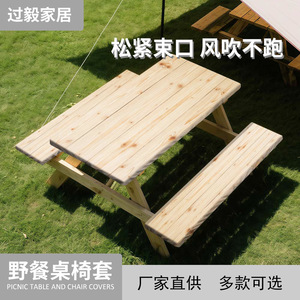 クロスボーダー アウトドア モロッコ キャンプ ピクニックテーブルカバー 伸縮性 汚れ防止 木目調 ロングテーブルと椅子カバー 装飾 3点セット