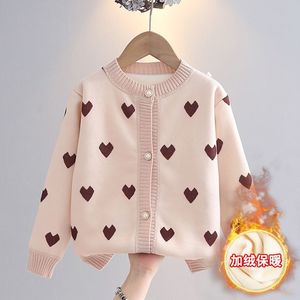 女の子ニットセーターカーディガンプラスベルベットファッショナブルな秋冬新韓国風子供服長袖ジャケットベビー子供トップス